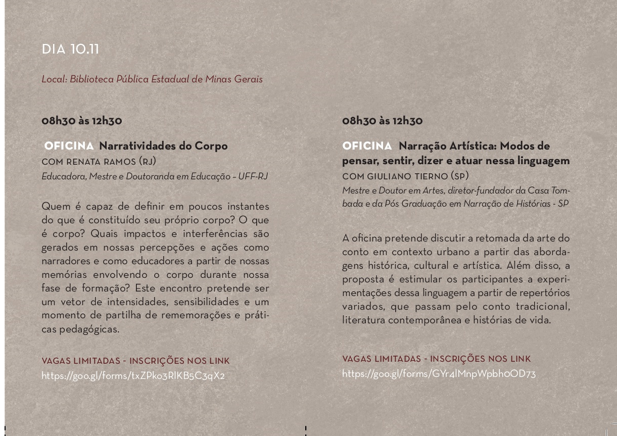 Quem é capaz de definir em poucos instantes do que é constituído seu próprio corpo? O que é corpo? Quais impactos e interferências são gerados em nossas percepções e ações como narradores e como educadores a partir de nossas memórias envolvendo o corpo durante nossa fase de formação? Este encontro pretende ser um vetor de intensidades, sensibilidades e um momento de partilha de rememorações e práticas pedagógicas.