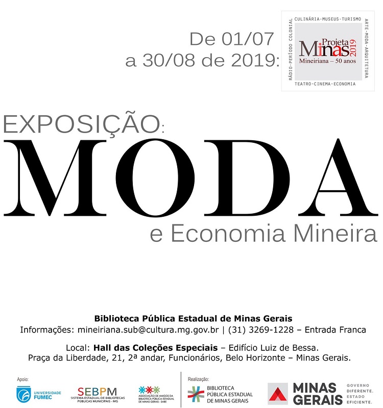 Em comemoração aos 50 anos da Coleção Mineiriana, a Biblioteca Pública Estadual de Minas Gerais apresenta Projeta Minas – Uma série de eventos que em 2019 abordarão as coisas de Minas Gerais. Neste mês abordaremos a questão da moda na economia Mineira.
